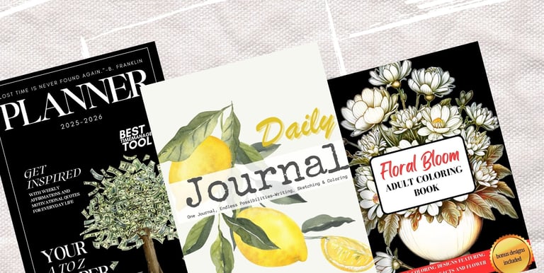 Stress relief and mindfulness coloring books, Planners, Journals and much more!
